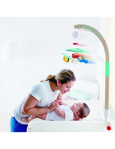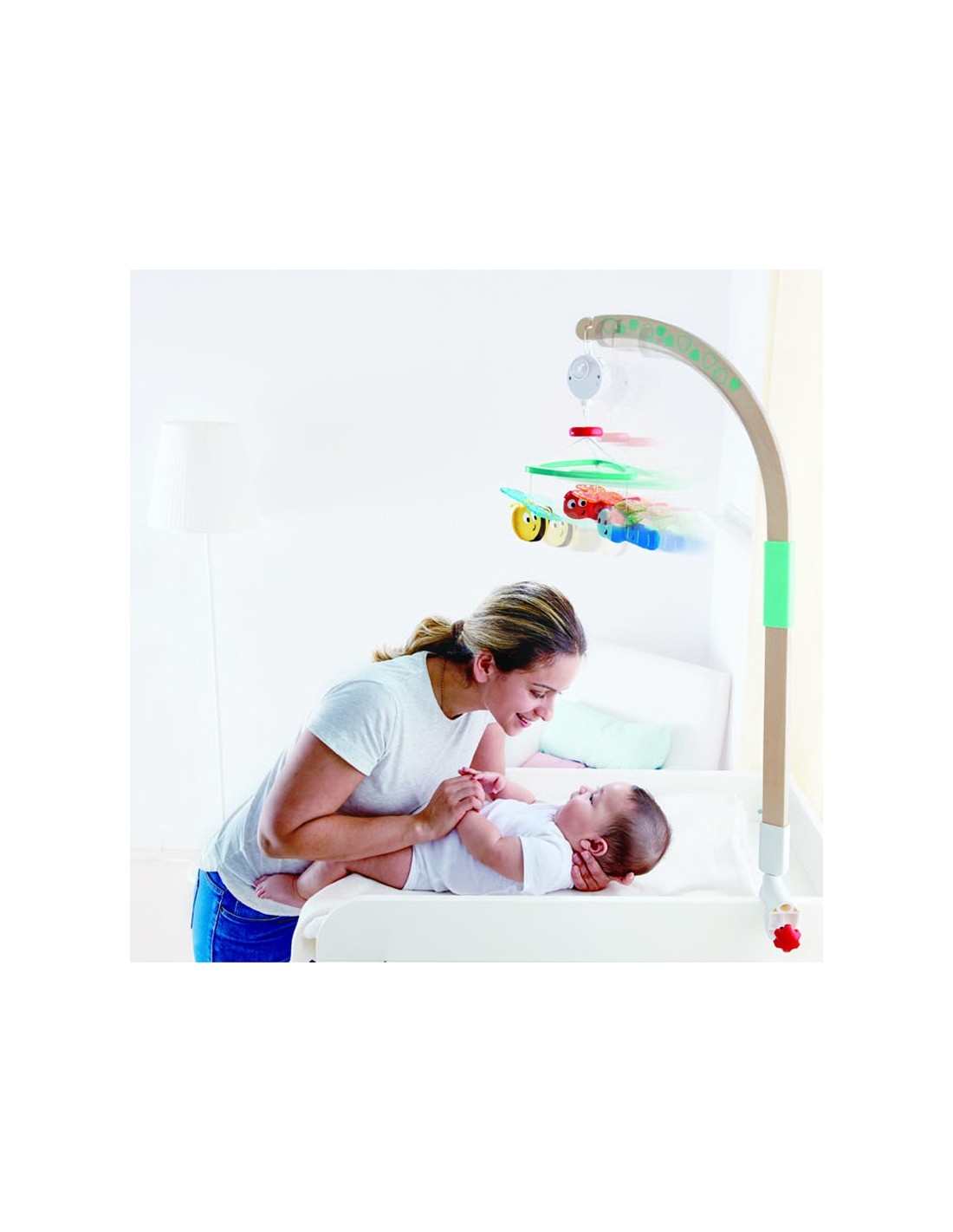 Rendez le moment du change et celui du coucher plus amusant grâce à ce mobile plein de couleurs qui se fixe en toute sécurité aux lits d'enfants et aux tables à langer. Une branche en bois ajustable permet une installation aisée et une utilisation modulable.