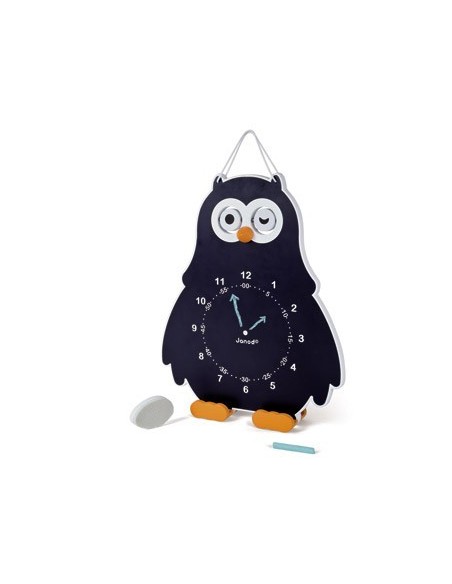 Double face, elle est composée d'un côté avec des aiguilles pour apprendre à lire l'heure et d'un côté ardoise pour s'exercer.