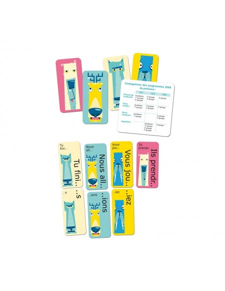 Votre enfant est mauvais en conjugaison à l'école ? Vous pensez qu'il n'a pas la bonne méthode à sa disposition ? Qu'il a besoin d'une aide ludique pour progresser ? Mieux que le Bescherelle, Conjudingo ce2 contient trois jeux de cartes amusants pour apprendre les verbes du 2ème et 3ème groupe à l'imparfait, au présent et au futur. Le jeu repose sur un code imparable utilisant des images d'animaux pour vérifier si la réponse donnée est la bonne. Conjudingo CE2 comprend 2 cartes de règles, 4 cartes d'aide sur les verbes conjugués et une centaine de cartes de conjugaison. En tout, le lot contient 106 cartes.