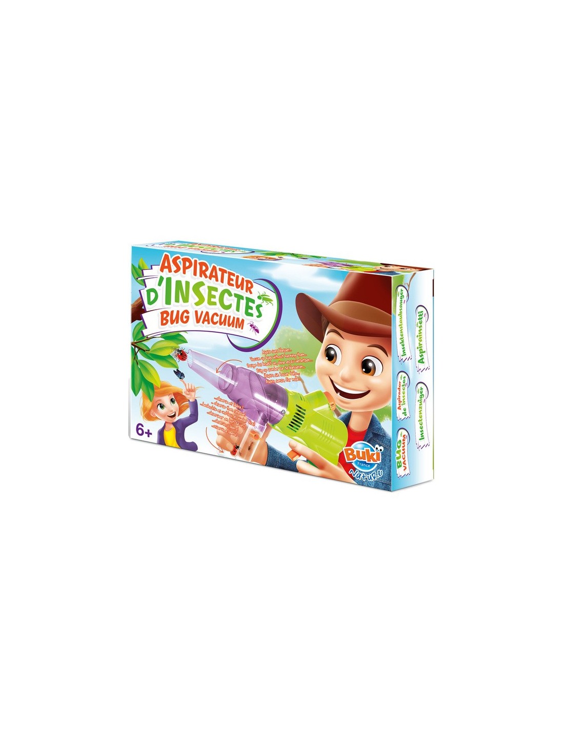 Aspirateur d'insectes avec 3 vitesses, 1 réservoir et 2 embouts. Ce jouet est idéal pour les enfants curieux qui aiment la nature.
