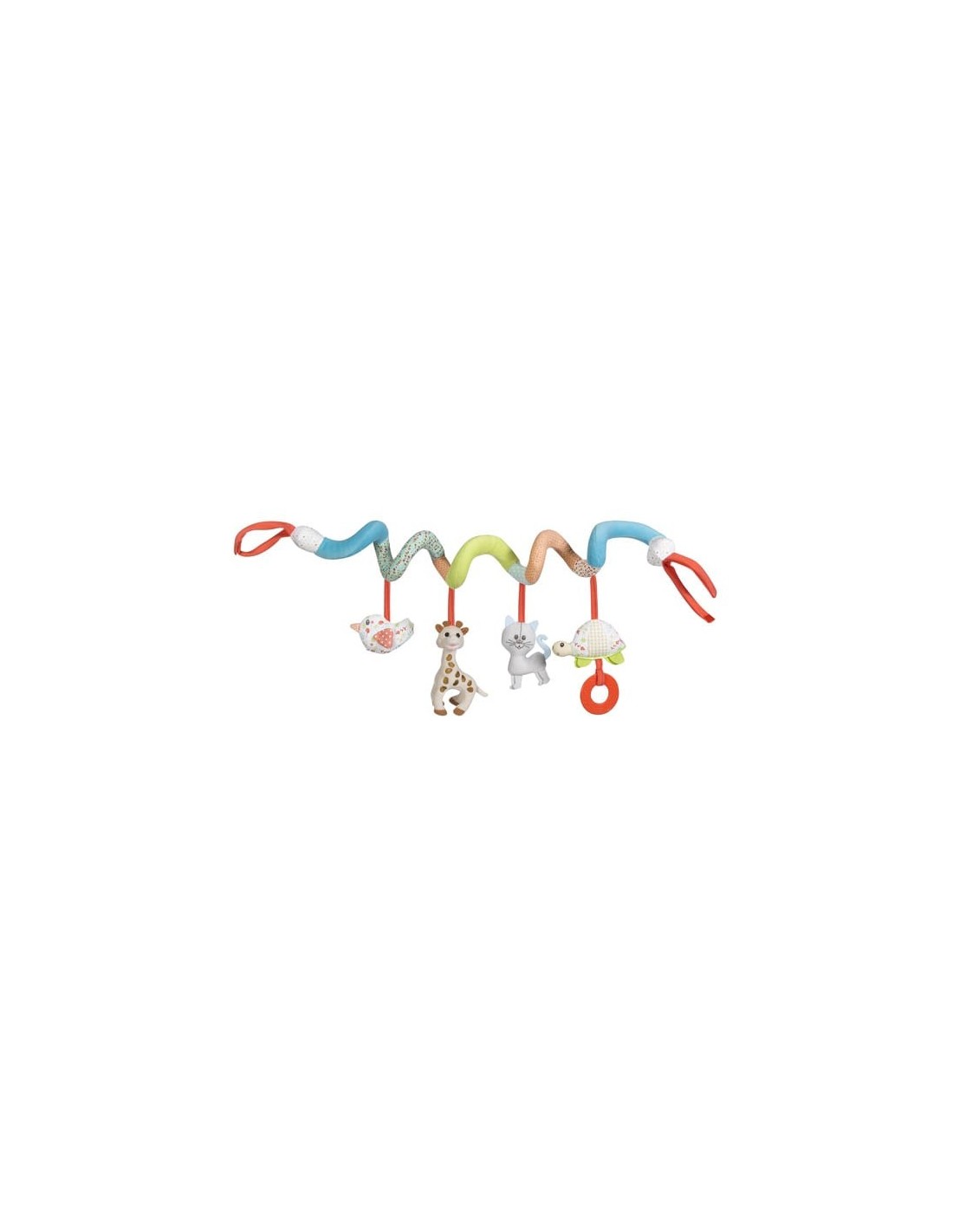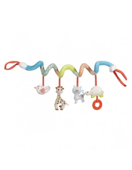 Très pratique, ce jouet s'étire à volonté de 20 à 80 cm et s'enroule facilement autour de la poussette ou sur le rebord du lit. Avec ses deux attaches velcro, il se fixe facilement pour ne jamais quitter votre enfant. Entièrement en textile pour plus de douceur et de sécurité, ce boulier à l'effigie de Sophie la girafe offre à bébé de multiples activités sensorielles : des couleurs vives et des motifs variés, de nombreuses matières et textures, une feuille bruiteur, une fraise avec effet "papier froissé", un papillon aux ailes crépitantes intégrant un anneau en plastique souple et texturé à mordiller et Sophie la girafe avec son joli son de grelot.