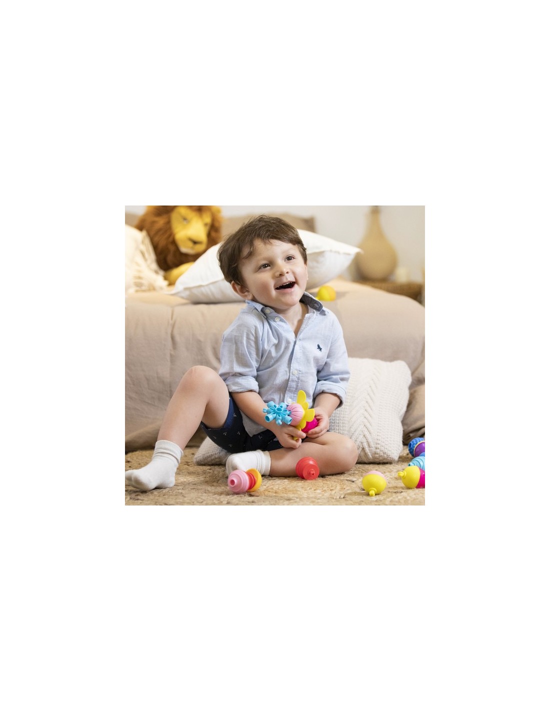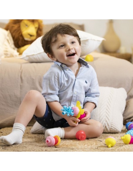 - 18 mois, l’enfant peut mixer les perles entre elles et créer de nombreuses combinaisons.