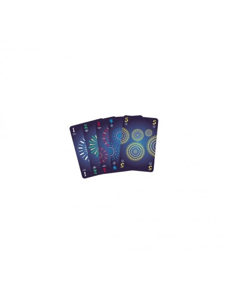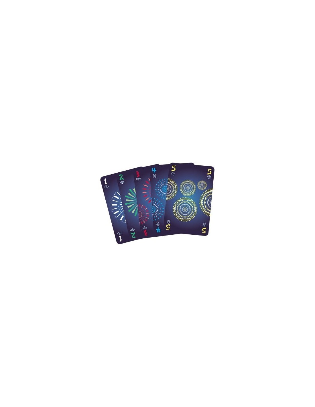 Dans le jeu Hanabi, vous incarnez des artificiers qui coopèrent afin de composer 5 feux d'artifice de couleurs différentes.