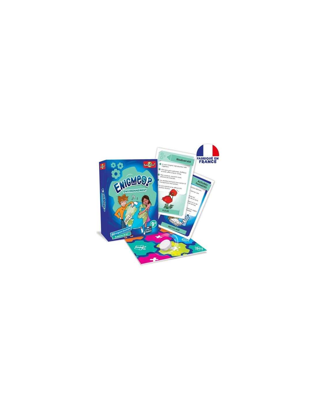 80 énigmes sur notre environnement, ses richesses et son importance pour les êtres humains ! Sois le plus rapide à deviner ce qui se cache derrière les 5 indices et fais preuve d'adresse pour gagner encore plus de cartes !Attention ! Il vous faudra aussi faire preuve d'adresse en lançant votre jeton sur le plateau pour gagner (ou non) plus de cartes...