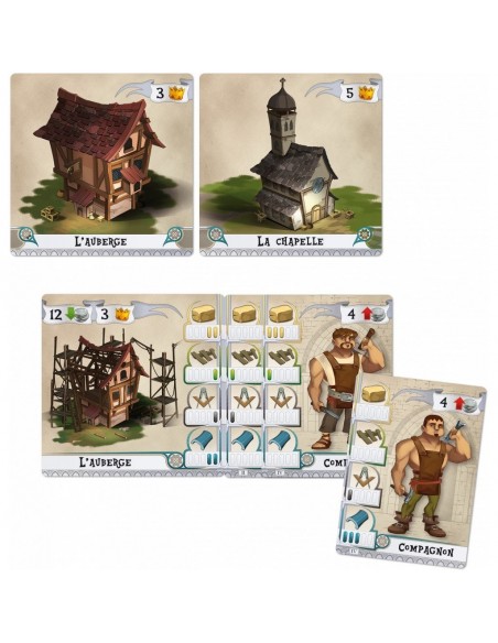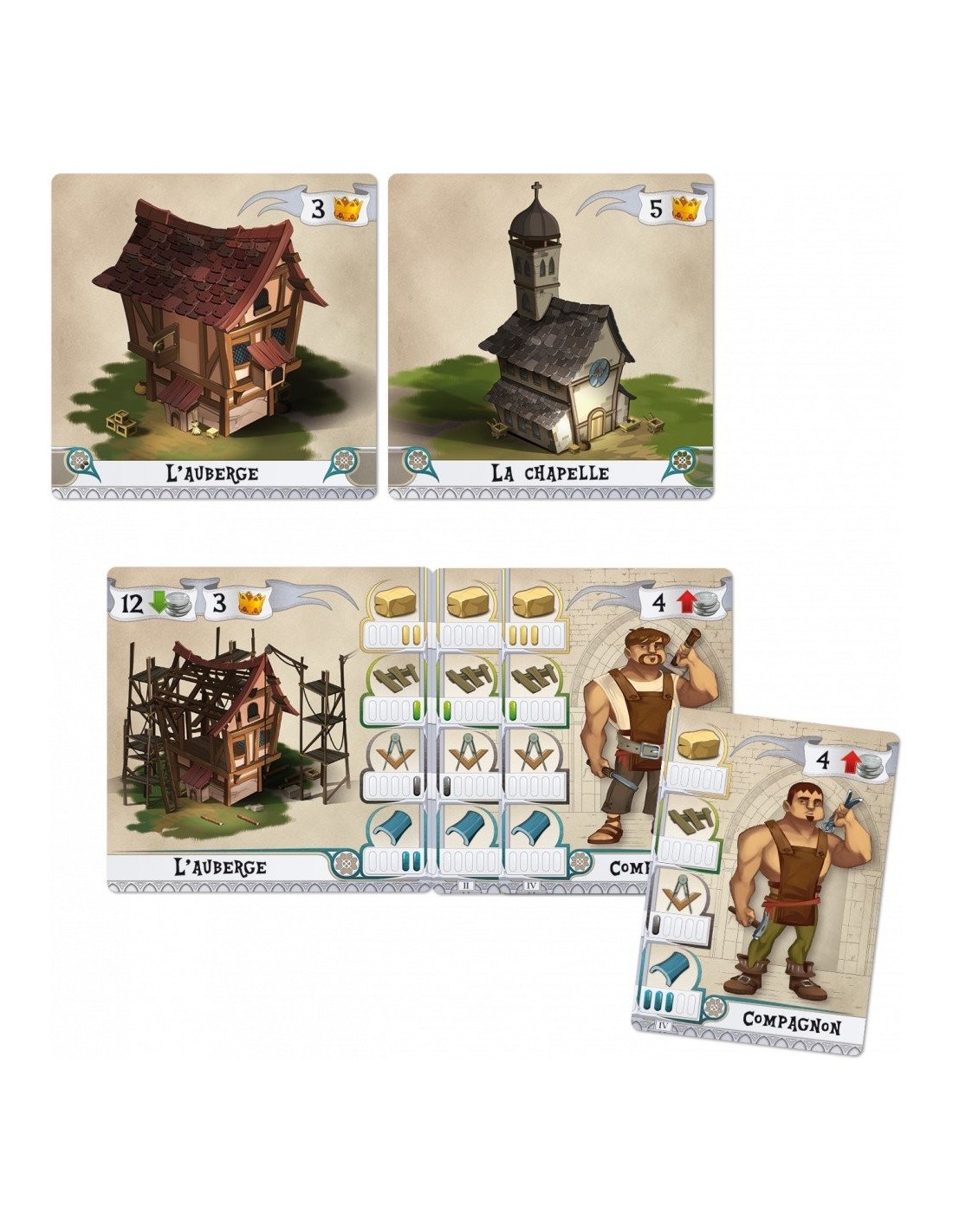 Les Bâtisseurs - Moyen-âge vous place dans le rôle d’un entrepreneur qui va devoir édifier divers bâtiments, en engageant des ouvriers et en gérant au mieux leur capacité de travail et ses ressources. Choisissez vos ouvriers et compagnons et réalisez les bâtiments les plus audacieux pour devenir le maître d'oeuvre le plus renommé du royaume !