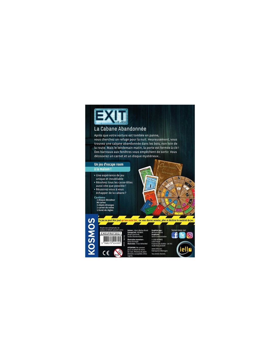 EXIT est un jeu qui reprend les sensations des "escape games". Muni d'indices, de matériel et d'un décodeur, vous aurez pour mission de sortir du jeu le plus rapidement possible.