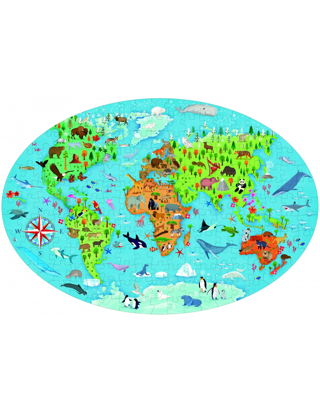 Le monde est en train de changer, et avec lui… les créatures qui l’habitent ! Assemble le puzzle pour connaître les animaux qui peuplent les différents continents, puis lis le livre pour en savoir plus sur les espèces menacées d’extinction. Un grand puzzle ovale et un livre consacré à un thème très actuel : la protection du milieu naturel et de ses espèces.