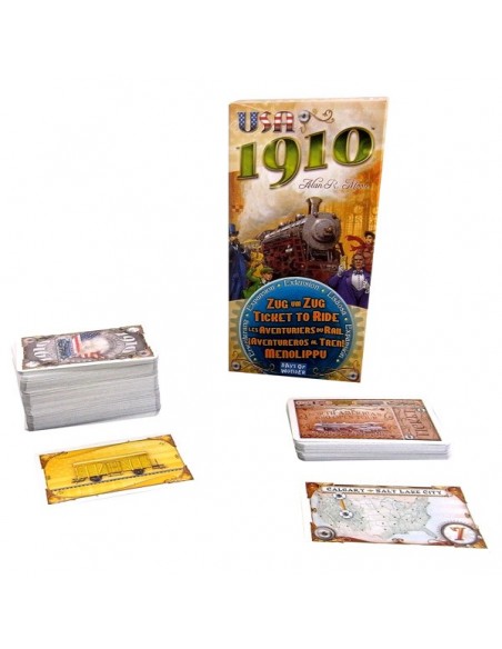 L'extension USA 1910 pour les Aventuriers du rail vous proposera de découvrir 181 cartes maintenant au même format que celle de Marklin et de la version Europe du jeu parmi lesquelles 35 nouvelles cartes destination, et une toute nouvelle carte bonus « Globe trotter ».