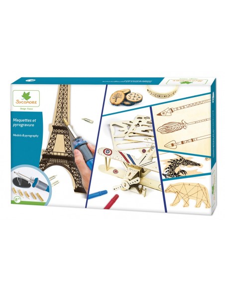 Ce coffret va vous permettre de vous initier à la pyrogravure et aux maquettes. Deux activités manuelleregroupées dans un magnifique coffret.