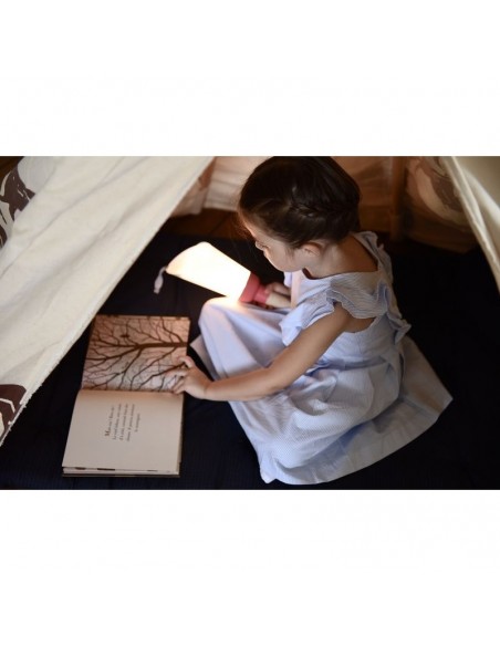 Une jolie lampe nomade rechargeable qui accompagne vos enfants de la naissance à 12 ans et +. Selon les moments ou envies, elle se transforme en un éclair en tournant simplement le manche : lumière douce pour allaitement ou biberons, lampe de poche, liseuse, applique, veilleuse, lampe de chevet…