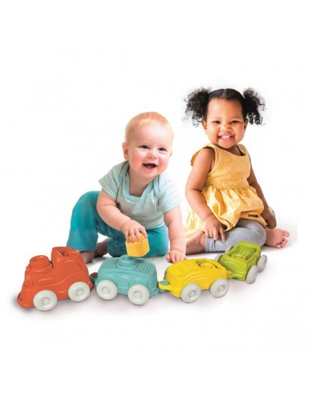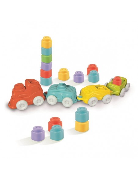 Pour compléter ce jeu d'éveil, le train Clemmy est accompagné de briques souples et colorées à empiler sur les wagons et la locomotive. Une fois la cargaison de briques souples chargée, votre enfant peut assembler les wagons entre eux et imaginer de belles aventures avec son train.