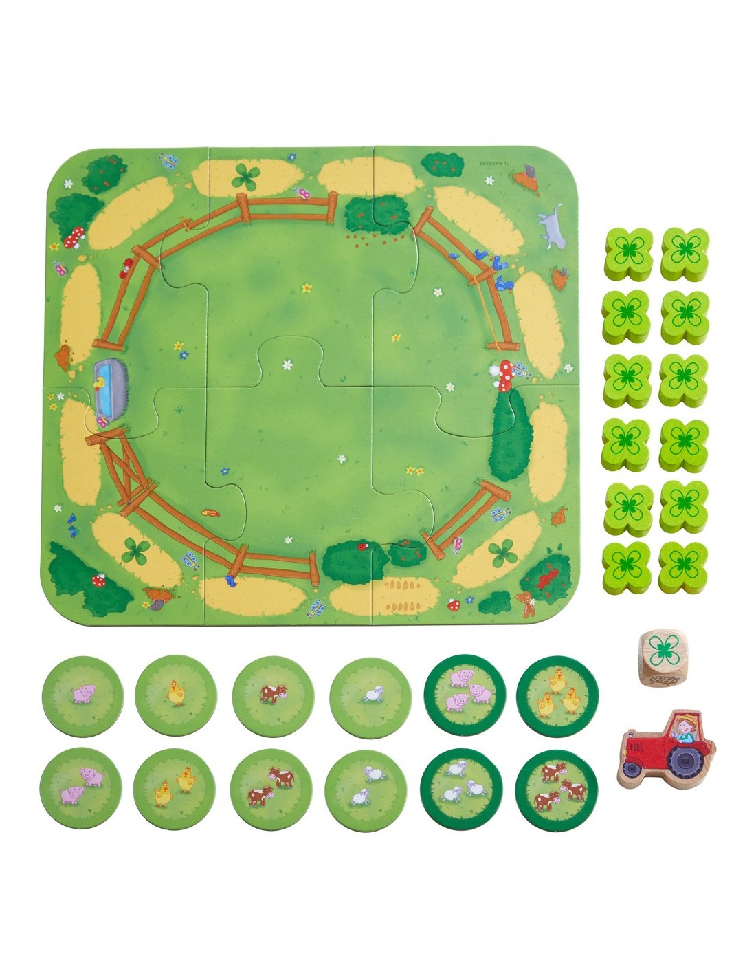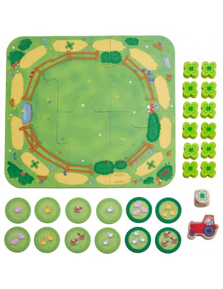 Les joueurs aident le fermier Tim à compter et nourrir les bébés animaux. Avec un peu de chance au dé, ils amèneront le tracteur de Tim jusqu’au succulent champ de trèfles ou pourront donner directement un trèfle à un bébé animal. Dès que les dernières feuilles de trèfle sont distribuées aux animaux, les enfants gagnent le jeu… en ayant appris à compter.