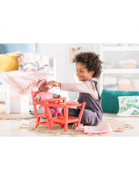 Découvrez la chaise haute corail pour poupée de Corolle, une chaise adaptée aux poupées de 36 à 42 cm, un accessoire de jeu pour les enfants à partir de 3 ans qui vont installer dans cette chaise leurs poupées mais aussi leurs peluches afin de leur donner à manger.