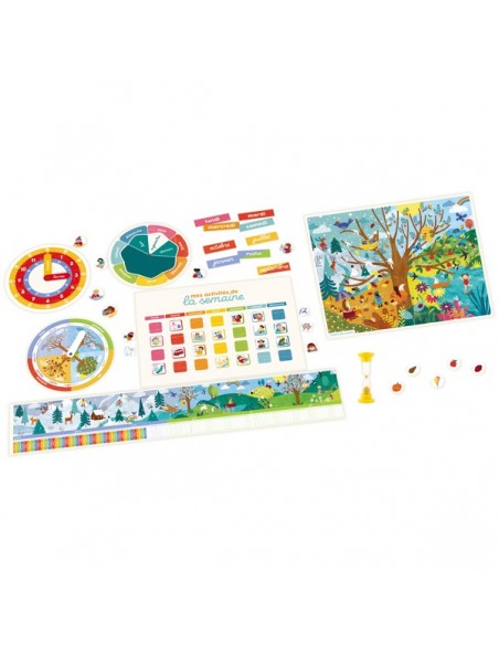 Avec ce jouet éducatif, il pourra apprendre et intérioriser des notions comme la journée, la semaine, les mois, les saisons, l'année etc, à travers diverses activités et un guide complet !