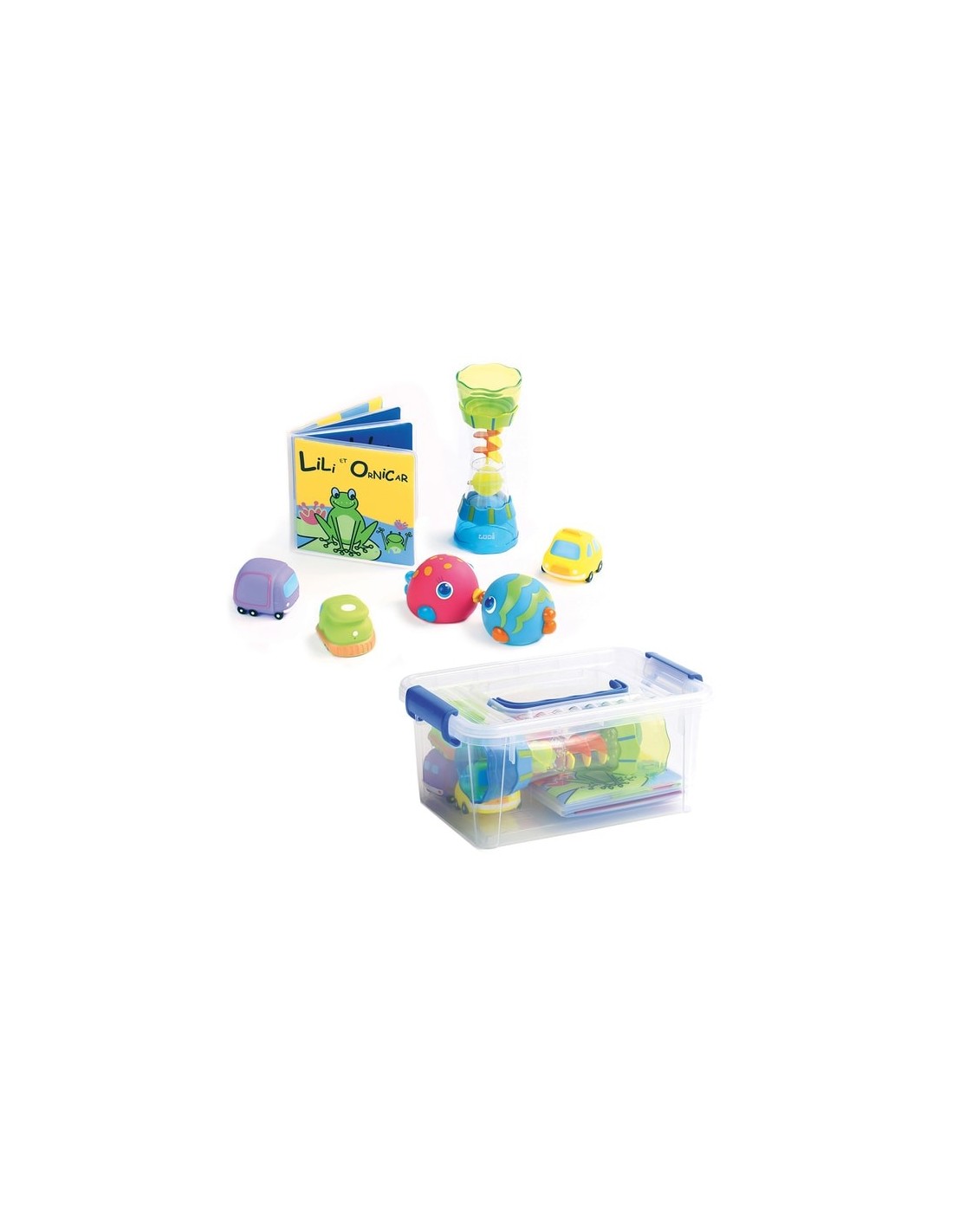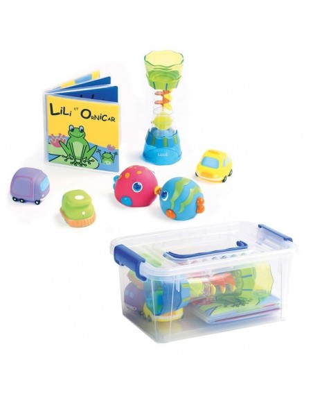 L'heure du bain sera un véritable moment de détente avec cette valisette qui contient plusieurs jouets.