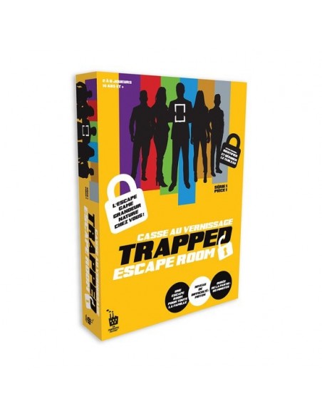 L' intrigue de Trapped - Casse au Vernissage - Niveau Moyen : vous êtes conviés au vernissage de la richissime famille Harrington par Charles, le benjamin. Il vous a confié une mission : identifier puis voler l’un des tableaux d’art de la collection familiale, mais lequel? Vous devrez aussi trouver parmi les 4 employés celui qui vous aidera à quitter le vernissage. Et enfin il faudra déverrouiller la porte de sortie en résolvant l’énigme finale !