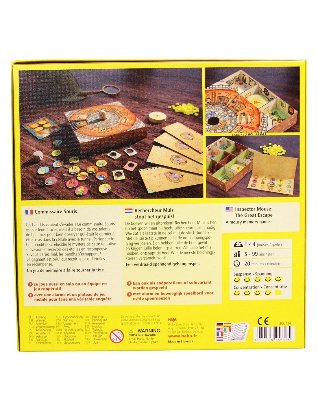 Les bandits veulent s'évader! Le commissaire Souris est sur leur traces, mais il a besoin de vos talents de fin limier pour bien observer qui était le dernier à être assis dans la cellule avec le tunnel. Pariez sur un bandit pour élucider le mystère de cette tentative d'évasion et recevoir des étoiles en récompenses. Si vous pariez mal, les bandits s'échappent! Le gagnant est celui qui reçoit le plus d'étoiles en récompense.
