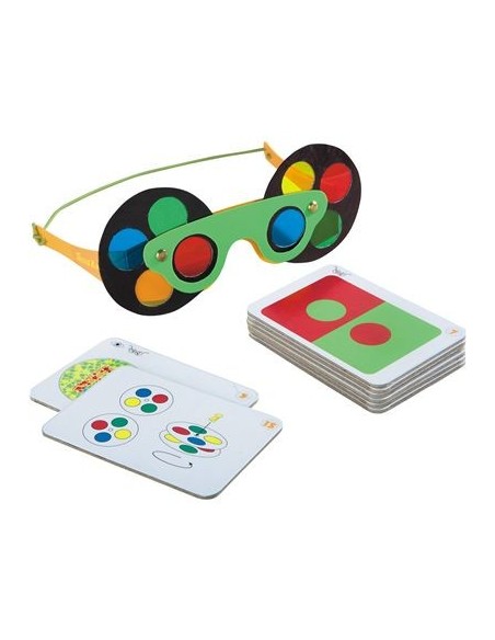 Il suffit d'assembler les lunettes de couleur, de les mettre et d'explorer les secrets du monde de la couleur avec les cartes de connaissances. ( La compréhension et la perception des couleurs sont sensibilisées).