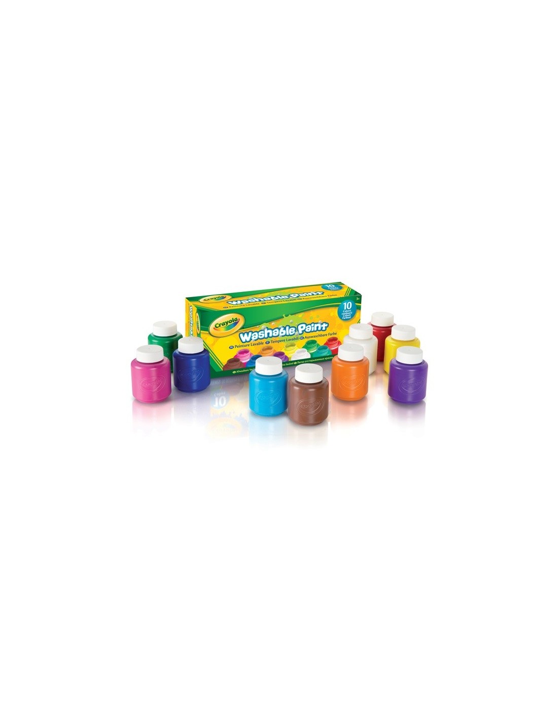 10 pots de peinture lavable de 59 ml chacun.