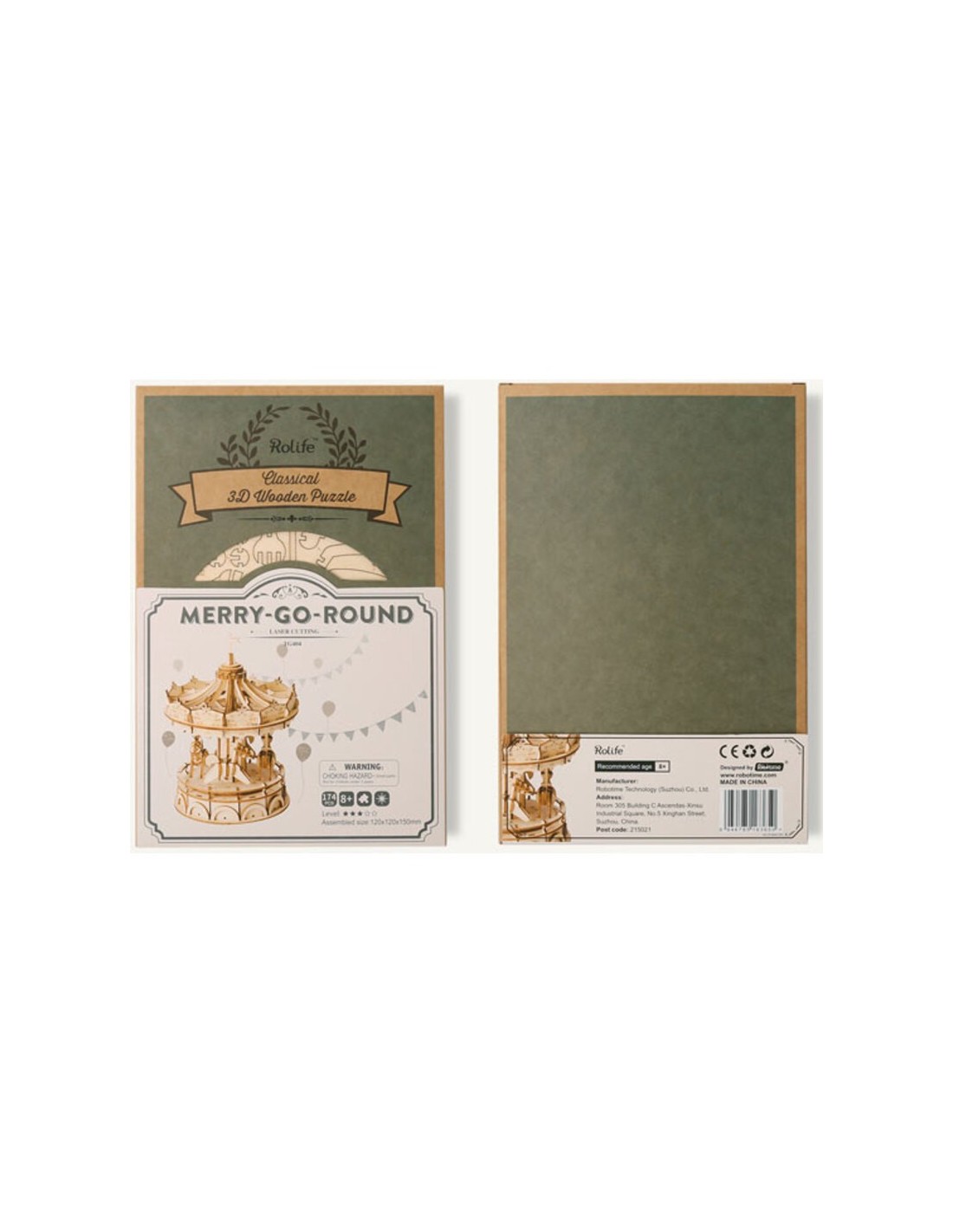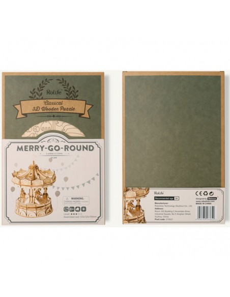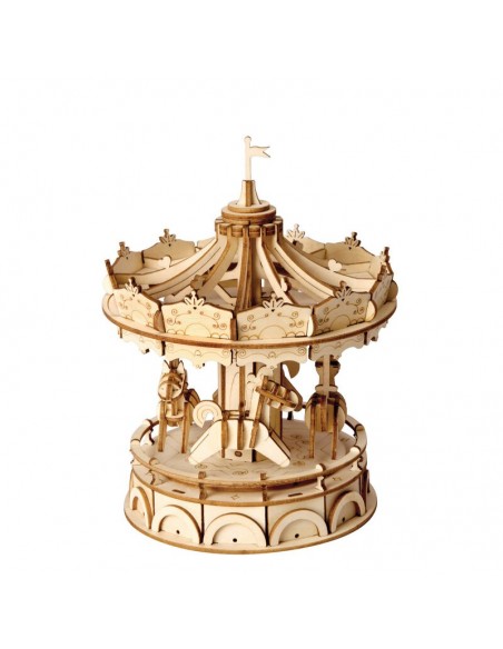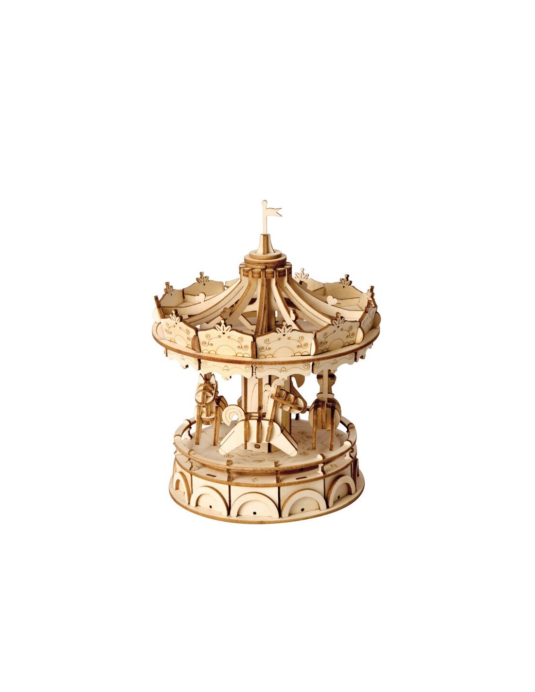 Puzzle 3D Merry Go Round 17,7 cm bois naturel Robotime